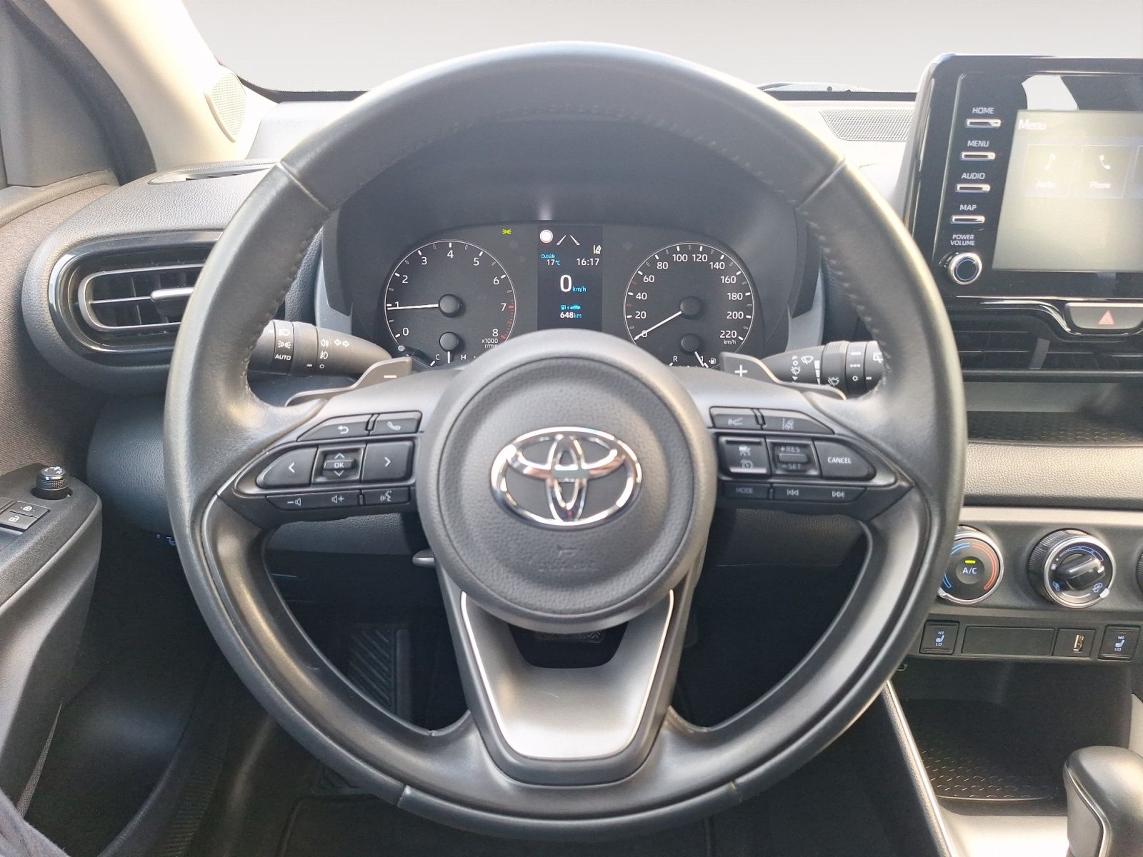 Toyota Yaris, Active Plus - komplektācija. 1.5 benzīndzinējs (92kw/125zs), automātiskā ātrumkārba. Krāsa - Night Sky Black. Toyota Approved garantija 2 gadi no iegādes brīža. Toyota Relax pagarinātā garantija līdz 185 000 km. vai līdz 10. gadi. Aprīkojums: - Atpakaļskata kamera. - Apsildāmi priekšējie sēdekļi. - Halogēna priekšējie lukturi (prožektoru tipa). - Riepu spiediena brīdinājuma sistēma. - Apsildāmi un elektriski regulējami sānu spoguļi virsbūves krāsā. - Elektriskais stūres pastiprinātājs. - Stūre ar ādas apdari. - Elektroniskā stāvbremze. - Inteliģentā adaptīvā kruīza kontrole (iACC). - Manuālais gaisa kondicionētājs. - USB pieslēgvieta. - Smart Entry & Push Start sistēma. - Bluetooth savienojums brīvroku tālrunim un mūzikas straumēšanai. - Mobilā integrācija (Apple CarPlay & Android Auto). - Bremžu pretbloķēšanās sistēma (ABS) ar elektronisko bremzēšanas spēka sadali (EBD) un bremzēšanas palīgsistēmu (BA). - Automobiļa stabilitātes kontrole (VSC) un vilces kontrole (TRC). - Palīgsistēma braukšanas uzsākšanai kāpumā (HAC). - Sadursmes novēršanas sistēma (PCS) ar gājēju un velosipēdistu noteikšanas funkciju. - Brīdinājums par izbraukšanu no joslas (LDA). - Joslas marķējuma nolasīšanas palīgsistēma (LTA). - Automātiska tālo gaismu funkcija (AHB). - Ceļa zīmju atpazīšanas palīgsistēma (RSA). - Sadursmju novēršana krustojumos (ICM). - Avārijas stūrēšanas palīgsistēma. - ISOfix bērnu drošības sistēma (2. rinda, 2 ārmalas sēdekļi). - Imobilaizers. - Centrālā atslēga ar pulti. Pārdod: Amserv Rīga, TOYOTA oficiālais dīleris. Apskatāma Krasta ielā 3, Rīgā. Iegādājies savu auto pie Amserv Rīga un iegūsti personīgo konsultantu automašīnas lietošanas laikā. Jūsu auto var kalpot kā pirmā iemaksa. Jūsu esošā auto bezmaksas diagnostika. Uz vietas pieejams Toyota līzings un apdrošināšana. Pirms auto apskates, lūgums zvaniet, lai pārliecinātos vai auto vēl pieejams.